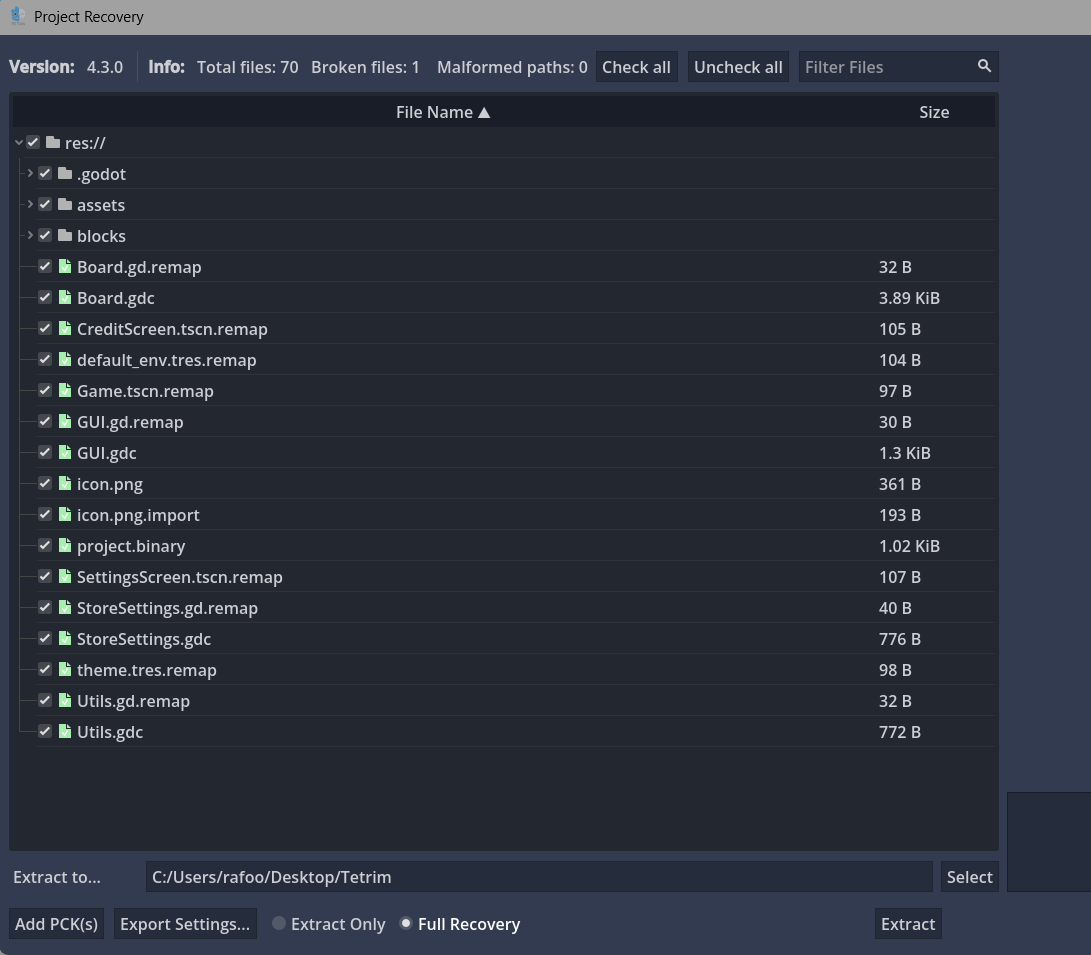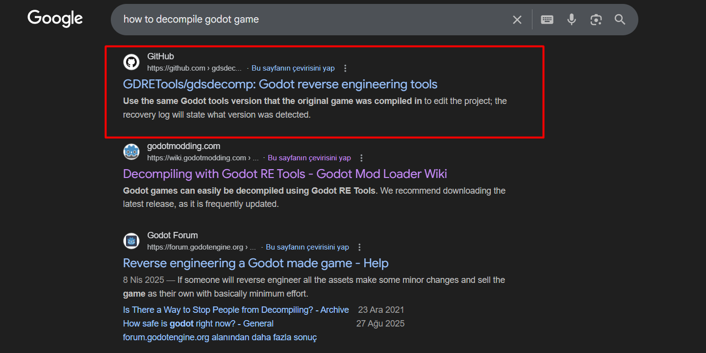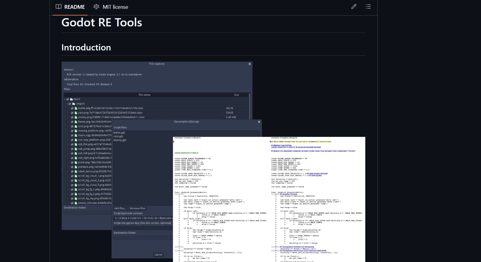 Bu proqram isə godot ilə yazılmış oyunları dekomplanasiya etmək üçündür